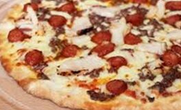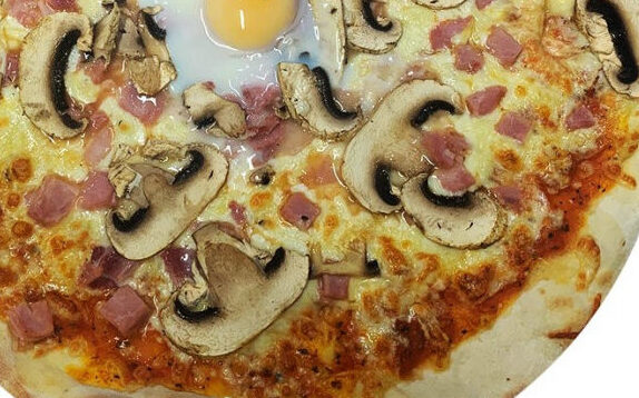 Base sauce tomate, mozzarella, jambon, champignons, chorizo, œuf.