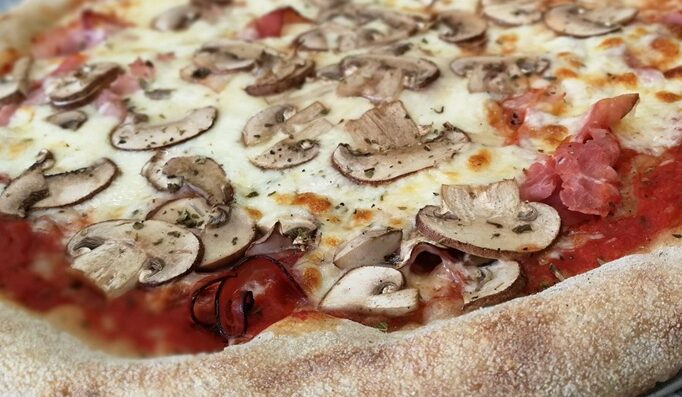 Base sauce tomate, mozzarella, jambon, champignons.
