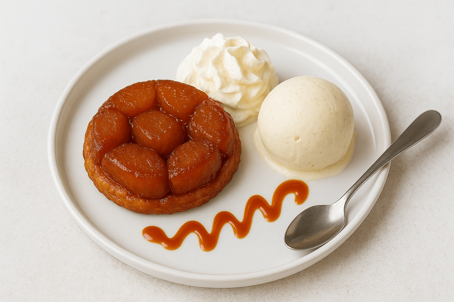 Tartelette TATIN servie tiède avec sa boulle de glace Vanille et Chantilly