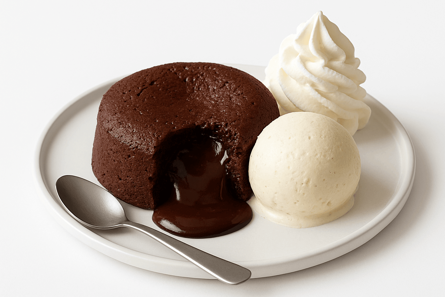 Mi-cuit chocolat, avec sa boule de glace Vanille et Chantilly.
